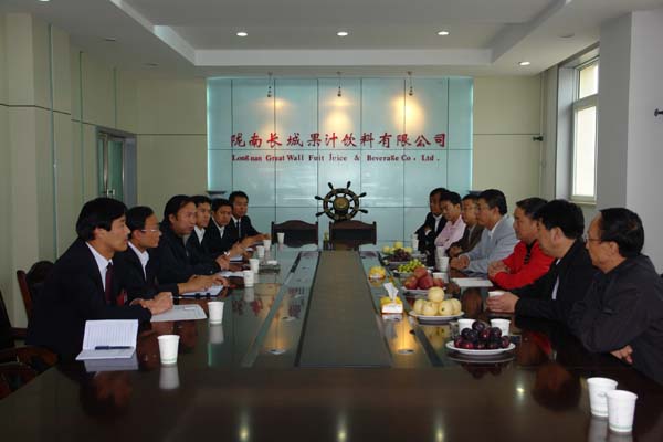 2009年9月12日,兰州长城电工总经理张希泰、副总经理毛建光、董事会秘书郭满元、综合管理部部长、证券部部长、市场部部长等一行在果汁公司董事长柳军民、党委书记王根成的陪同下到天水长城果汁饮料有限公司和陇南长城果汁饮料有限公司进行考察调研,并组织陇南公司科级以上干部召开了座谈会。