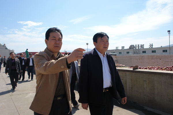 天水市副市长雷鸣带领市政府副秘书长杨胜利、市经委主任徐国民、 上午10点,副市长雷鸣及相关部门领导一行下车就直接到生产现场查看生产情况。公司总经理王小宏向雷鸣副市长汇报了果汁公司当前生产经营及市场开发情况,并现场提出了继续开通等外苹果运输绿色通道的问题,雷鸣副市长当场安排有关负责人限期予以办理。