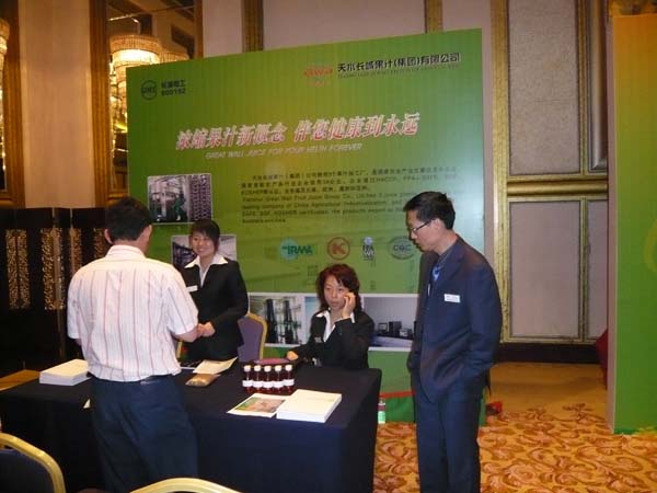 本次会议是我公司首次以大会黄金赞助商的身份参会,并在会场中设立了专门的展位。参会期间,领导及员工统一着装、积极工作,向世界果汁界同行充分展示了长城果汁奋发向上的精神风貌和企业形象。在短短的三天时间里,我公司共接洽了30多家国内外客户,达成合作意向近万吨,并在日本、国内、果渣、小包装市场开发方面找到了新的突破口。本届果汁大会是一次成功的大会,必将对我公司2009/2010榨季以及今后调整市场结构、转变销售观念、扩大市场占有率等方面产生深远的影响。