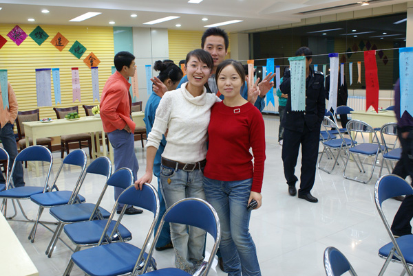 公司党委书记王根成、副总经理王建华与员工一起参加灯谜晚会