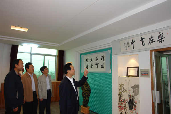 在果汁公司董事长柳军民、总经理王小宏、常务副总经理董占成、总经理助理冯瑜稳的陪同下,长城电工董事长杨林查看和了解了目前生产经营情况,之后来到公司会议室兴致盎然地参观了“果汁公司庆祝建国60周年职工摄影、书画展”。
