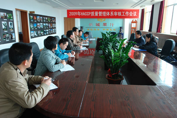 审核组组长韩瑞麒对公司严格的管理、规范的制度、健全的运行机制给予了充分肯定和较高评价。最后,审核组宣布:天水长城果汁(集团)有限公司及下属三个子公司高度重视产品质量和食品卫生安全,执行程序文件严格认真, HACCP质量管理体系运行正常有效。因此,天水公司的HACCP换证审核和陇南、秦安公司的HACCP年度审核全部通过。 |