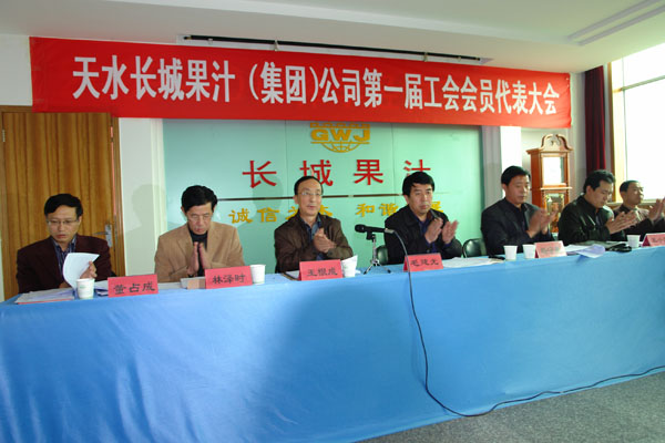 天水市总工会副主席杨守来高度赞扬了本次大会筹备精心、安排规范,公司党委对群体组织重视、指导有方。同时对公司多年来带动广大果农创收、增效给予了充分肯定。对这次大会的圆满成功表示祝贺!同时希望新一届工会委员会积极开展工作,依法行使权利和履行义务,维护职工合法权益。组织职工积极投入公司的生产经营活动,为积极应对金融危机发挥重要作用,推动企业持续稳定发展。