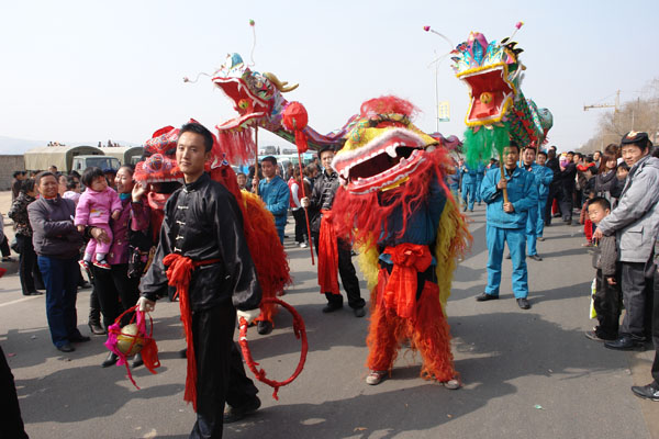 狮子腾翻扑跌,跳跃登高,赢得了观众的喝彩和掌声。两条巨龙跟着绣球,或腾跃、或滚动,或盘起、或穿插,不断展示扭、挥、仰、跳、摇等多种姿势表达了对新春的祝福和对美好生活的赞美,他们娴熟的表演受到了广大市民的喜爱和好评,为市民送上了一道丰盛的文化大餐。 |