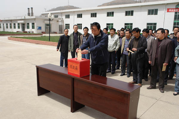 4月26日,公司为青海玉树地震灾区“送温暖、献爱心” 捐款活动在公司办公楼前举行。公司领导柳军民、王小宏、董占成、秦小强、冯瑜稳及集团公司干部员工88人参加了本次捐款活动。公司党委书记、工会主席王根成主持活动并代表公司党委、行政发表了动员讲话。