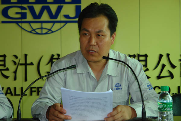 会上,公司总经理王小宏代表公司班子作了《2009年度工作总结暨2010年生产经营工作计划》的工作报告。从七个方面全面回顾和总结了公司2009年经营工作取得的成效,客观指出了公司当前经营工作存在的问题和困难,认真分析了公司当前所面临的经济形势。围绕公司2010年生产经营目标,树立五个方面的生产经营指导思想: 第一、实现一个目标:即年度生产经营目标; 第二、推进两个强化:集团化体制机制建设,企业文化建设; 第三、抓好三个市场:抓好北美及国外高端市场,抓好国内果汁及果汁饮料市场,抓好原料收购市场。 第四、提高三种能力:提高对行业变化规律的分析能力,提高抵御市场风险的防范能力,提高完成各项工作的执行能力; 第五、落实三项管理:产品质量安全管理,班组生产现场管理,项目研究及建设管理。 在2010年的工作安排中,重点从销售、原料采购、资金管理、生产任务分解、项目支持、外协加工、费用控制、效益测算、专项工作、干部队伍建设和党建、企业文化建设等十一个方面,提出了具体要求和措施,系统部署了2010榨季生产经营工作重点。
