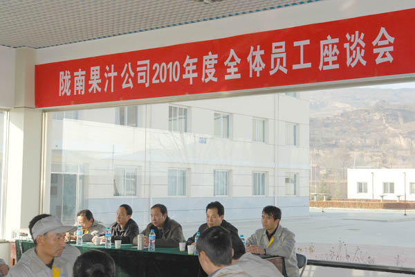 会议简要总结了2010年工作。2010年公司紧紧围绕年度经营目标,以提高经济运行质量为中心、以构建充满生机活力的文明和谐企业为主题,在面对国际果汁市场复杂变化、天水及周边地区原料大幅减产、果汁行业重组加剧等等的诸多困难因素的影响下,公司上下齐心协力,改革创新工作思路,加大工作力度,发扬了求真务实、顽强拼搏、知难而进、自强不息的工作作风,积极应对挑战,较好地完成了长城电工下达的各项任务,各项工作取得了新的进展。