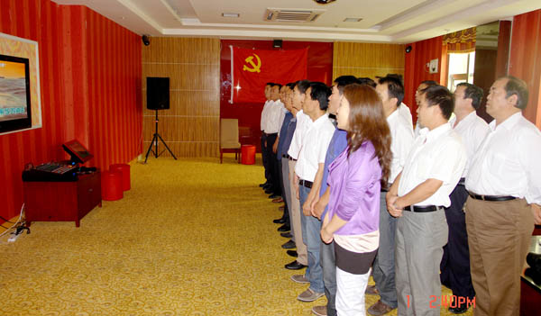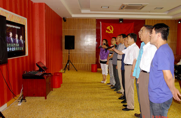 课后,全体党员再一次重温入党誓词。以支部为单位,组织开展“唱红歌”活动,进一步激发广大党员干部爱国、爱党、爱岗敬业的热情。