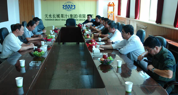 公司董事长柳军民、副总经理兼财务总监秦小强、副总经理王建华陪同蔺行长一行参观了苹果收购现场并进行了座谈。柳军民就公司近期生产经营情况、贷款资金的使用情况做了汇报。