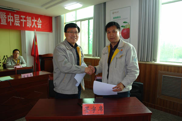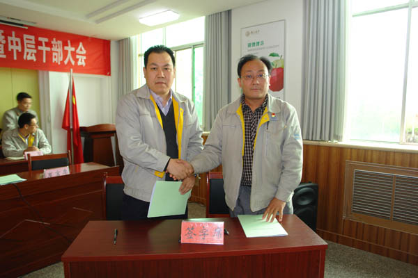 (总经理王小宏与副总经理张忠旺签订目标责任书)