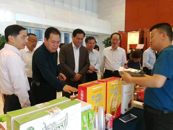 2018年5月18日上午,“奋进石化”企业子平台上线暨甘肃优质农产品入驻启动仪式在北京石化集团总部举行,中国石化党组副书记、副总经理李云鹏参加启动仪式,甘肃省委宣传部副部长、省委网信办主任梁和平在启动仪式上推荐了甘肃优质特色农产品。陇上花牛100%苹果汁作为重点商品入驻该平台,并作为会议唯一指定接待饮品。 |