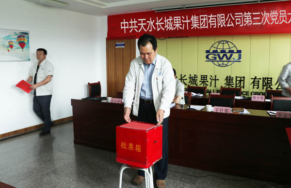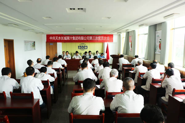 6月15日,中共天水长城果汁集团有限公司第三次党员大会在公司二楼会议室召开,来自各个岗位的41名党员和列席代表参加了会议。长城电工党委副书记郭满元出席会议并讲话。