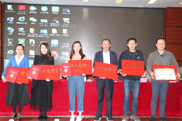 (省冶金机械工会主席翁辉作报告) 我公司员工温东林获得金牌工人奖项、柳爱军获得优秀工会干部奖项以及天水公司生产科获得工人先锋号奖项。
