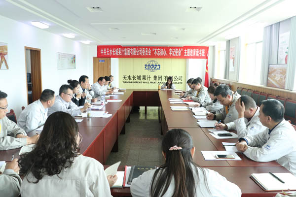 根据《中共天水长城果汁集团有限公司委员会关于开展“不忘初心,牢记使命”主题教育实施方案》文件要求,结合“不忘初心,牢记使命”主题教育读书班安排,于9月18日上午在集团公司二楼会议室召开“不忘初心,牢记使命”主题教育读书班专题研讨会。公司党委委员、领导班子成员、助理级人员、纪委委员、纪检干部、党支部书记以及各部门负责人参加,研讨会由公司党委书记董事长王小宏主持,市委第八巡回指导组杨姗姗同志到会指导.