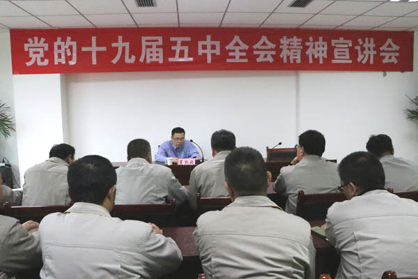 11月26日上午,甘肃国投集团党委委员、副总经理夏凯旋来到基层党建联系点--长城果汁机关党支部宣讲党的十九届五中全会精神。长城果汁领导班子成员、中层干部、机关党支部全体党员40余人参加了学习。