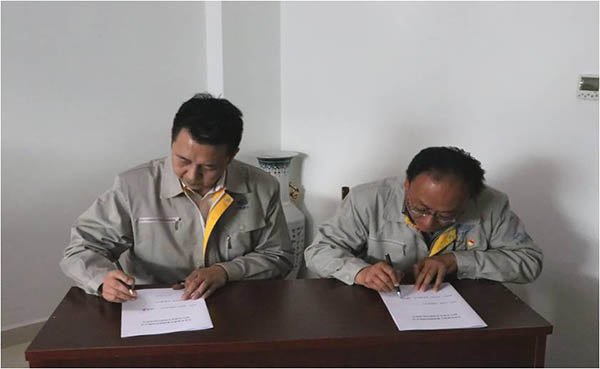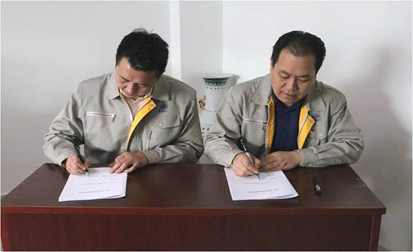 会上,党委书记、董事长与总经理签订了《经营业绩考核责任书》、《安全环保目标责任书》;总经理与经理层分别签订了《安全环保目标责任书》;总经理王书英代表行政方与工会主席王仕郁代表职工方签订了公司《工资专项集体合同》、《女职工特殊权益保护专项集体合同》。