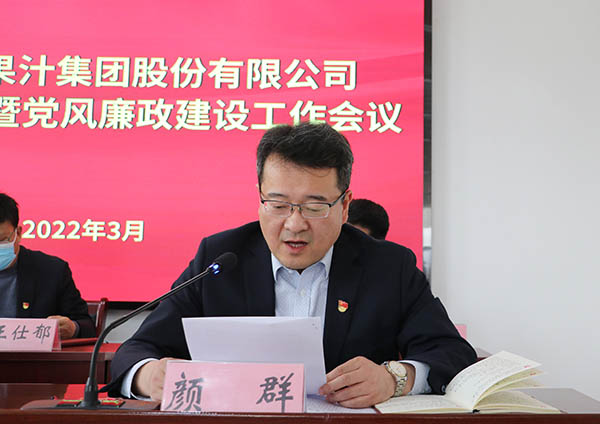 3月17日,长城果汁召开2022年党建暨党风廉政建设工作会议,公司党委领导班子成员、总经理助理及以上领导、集团各部门负责人、子公司负责人、党支部书记及党员代表参加会议,党委副书记、纪委书记颜群主持会议。