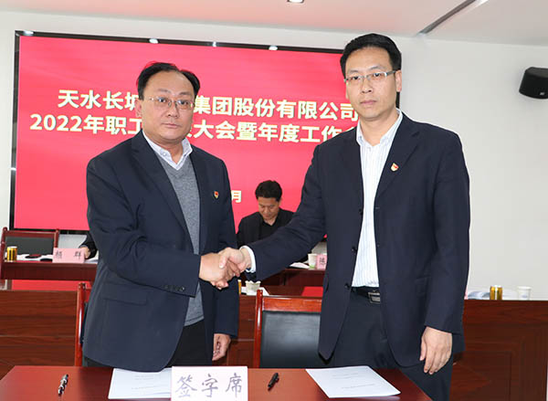 会上,党委书记、董事长与党委副书记总经理、党委副书记纪委书记、党委委员监事会主席工会主席分别签订了《经营业绩考核责任书》,与党委副书记总经理、党委委员总工程师分别签订了《安全环保目标责任书》;总经理与经理层、财务副总监分别签订了《经营业绩考核责任书》;总经理张忠旺代表行政方与工会主席王仕郁代表职工方签订了公司《集体合同》。
