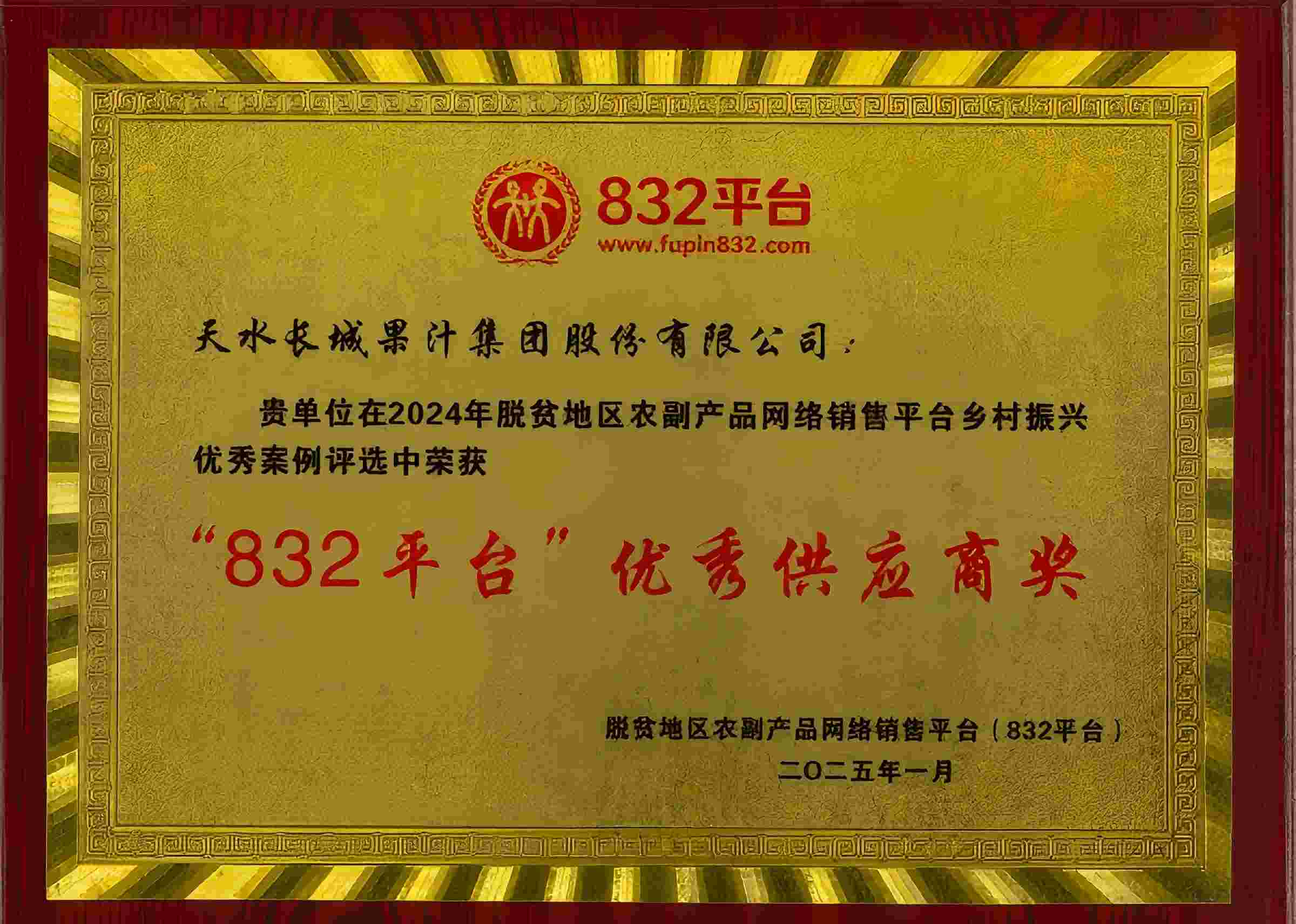 | 我公司荣获脱贫地区农副产品网络销售平台“832平台”优秀供应商奖 |