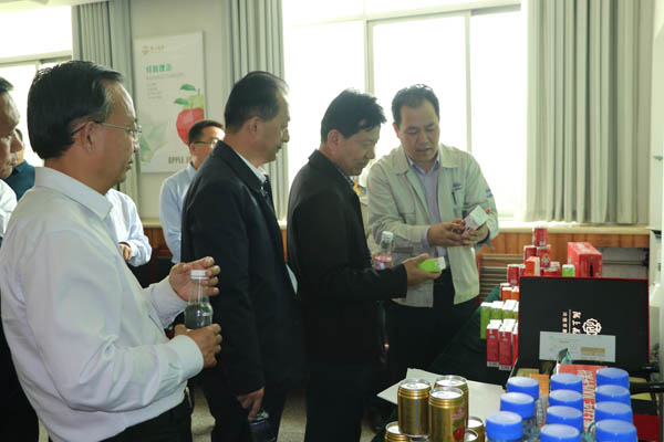 调研组一行深入公司集团及公司年产10万吨高端果蔬汁加工灌装生产线建设示范基地,通过实地查看、听取汇报、交流询问等方式对公司的生产经营、市场销售、展品展示以及减轻企业税费负担、解决企业融资难,融资贵、营造公平竞争环境、构建亲清新型政商关系、保护企业家人身和财产安全等政策措施贯彻落实情况进行了详细了解,并召开了座谈会。