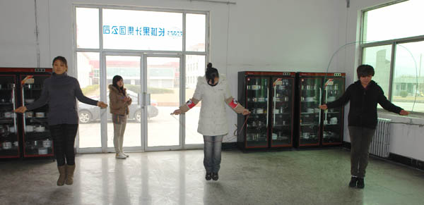 | 为喜迎第102个“三八”国际妇女节的到来,促进女职工健身活动,3月7日下午,公司工会在职工食堂举办了女职工跳绳比赛活动,共有30余名女工参加了此次跳绳比赛。公司董事长、总经理柳军民,副总经理秦小强、王建华与女职工一起共庆节日。
