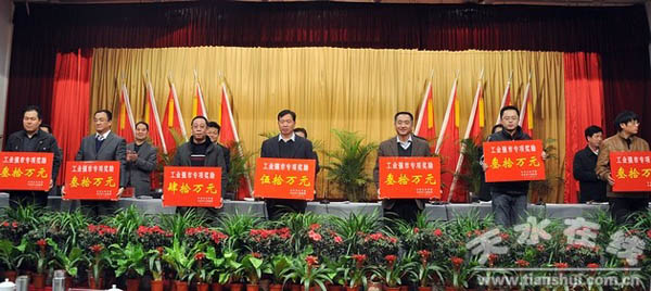 2月29日上午,全市工业经济工作会议在天水市迎宾馆举行。会上,天水市委、市政府对符合天水市工业强市奖励办法、奖励条件的先进企业和符合“10强50户”企业税收奖励政策的先进企业进行了表彰奖励。