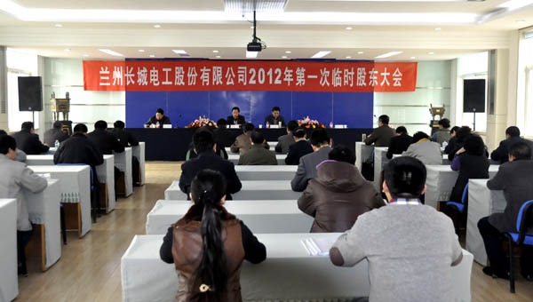 2012年3月2日下午,由董事长杨林主持,兰州长城电工股份有限公司在办公楼5楼会议室召开长城电工2012年第一次临时股东大会。公司101名股东和股东代表及公司董事、监事、高级管理人员参加了会议。 |