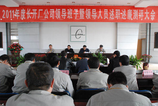 在述职述廉民主测评大会上,长城电工所属企业领导班子暨领导人员分别就班子和个人进行了述职述廉。