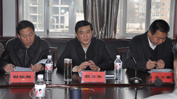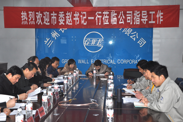 2012年3月14日上午,天水市委常委、政法委书记赵卫东在天水市企业工委、财政局、工信委、发改委、统计局、国税局、地税局天水电器联合会等部门领导陪同下,专程来长城电工天水电器集团有限公司就落实天水市电工电器行业协作配套集群发展的实施意见情况、创先争优工作和“联村联户、为民富民”工程实施情况等进行调研。 天电集团公司常务副总经理毛建光和长城电工天水物流公司副总经理颜群分别就天电集团公司生产经营、目标措施和产业园项目执行情况和物流公司近期经营情况做了汇报。