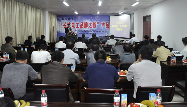 同日下午,长城电工在庆阳体育馆举办了“辉映神州-长城电工品牌之旅”庆阳品牌推介活动。长城电工总经理张希泰致欢迎辞,总工程师张建成主持会议。 甘肃省工信委运行处领导,庆阳市商务局、庆阳市工信委领导出席会议并分别讲了话。 长城电工长开厂公司、二一三公司、天传所公司和长控公司的市场开发部负责人分别向参会的领导和来自庆阳煤炭、煤电、煤化工、石油化工、电网等行业用户代表宣推了本单位的新产品。 中央CCTV-4、甘肃电视台、庆阳日报、庆阳电视台等新闻媒体对公司进行了采访。