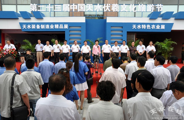 6月21日上午,第二十三届中国天水伏羲文化旅游节暨天水装备制造业精品展在天水市龙城明珠隆重开展,省委常委、副省长咸辉宣布天水特色农业和装备制造业精品展开展,市委书记马世忠,市委副书记、市长王锐,市委副书记、市政协主席杨维俊等省市领导及市工信委等有部门参加开展仪式。