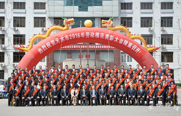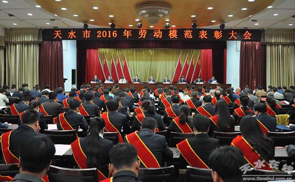 4月28日下午,天水市庆祝2016年“五一”国际劳动节暨劳动模范表彰大会在天水迎宾馆举行。全市各行各业涌现出来的99名劳动模范受到隆重表彰。长城电工天水电气传动研究所有限责任公司董事长、总经理王有云同志、长城电工天水长城开关厂有限公司技术部副部长刘伟同志和长城电工天水二一三电器有限公司班组长陈义龙同志,被授予“天水市劳动模范”荣誉称号,受到大会表彰。