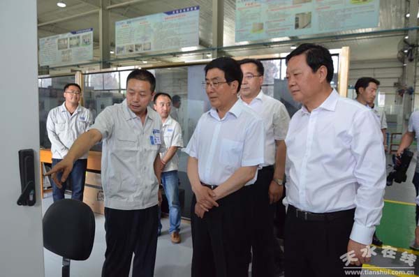 6月22日,省委副书记、省长林铎在省政府秘书长张生桢;天水市委副书记、市长杨维俊,市政府秘书长逯克宗;麦积区区委书记张智明及开发区管委会相关领导的陪同下赴长城电工所属企业天水电气传动研究所有限责任公司调研。 在天传所公司,林省长一行一边参观公司一边详细听取了长城电工天传所公司董事长王有云就天传所公司整体发展情况的汇报,并重点汇报了大型电气传动系统与装备技术国家重点试验室建设和汽车充电桩项目建设等情况。