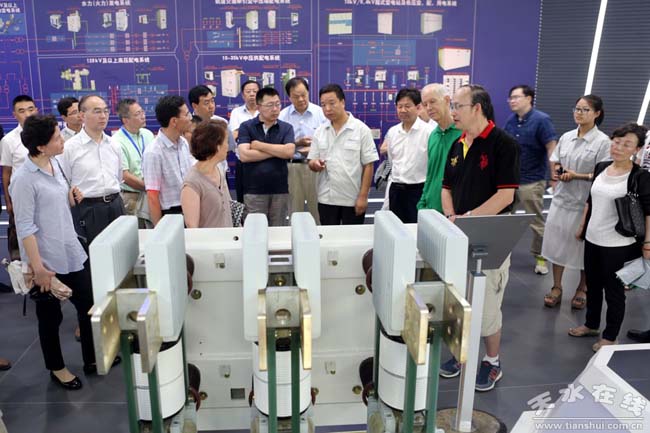 7月23日,在天水市参加2016绿色及可持续发展麦积山论坛的40多名两院院士、“长江学者”及专家来长城电工参观考察。天水市人大常委会主任柴金祥,市委常委、副市长张明泰,市政府秘书长逯克宗一同考察。