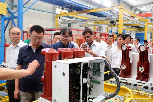 长城电工副总经理、总工程师张建成及长开厂公司总经理陈康龙陪同两院院士、“长江学者”及专家参观了长城电工天水电工电器产业园展厅及中压空气绝缘开关厂房(B1)等部分生产现场。