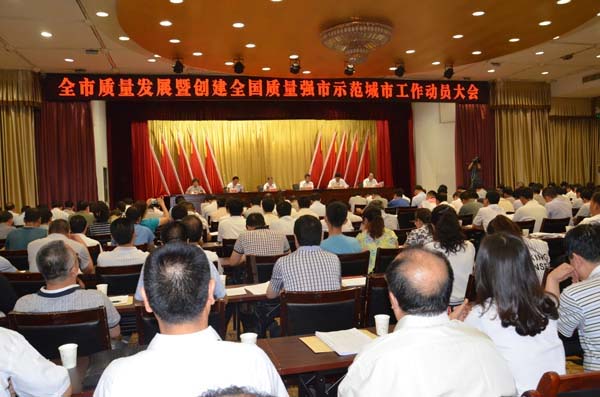 7月26日,天水市质量发展暨创建全国质量强市示范城市工作动员大会在天水迎宾馆三楼会议室召开。会议总结了天水市实施质量强市战略取得的初步成效,表彰了2015年度在全市质量建设中作出突出成绩的先进单位和企业。长城电工天水长城开关厂有限公司荣获2015年度“天水市人民政府质量奖”受到大会表彰。 省质监局党组书记、局长马平,天水市委书记王锐,市委副书记、市长杨维俊,市委常委、政法委书记赵卫东,副市长温利平,市政协副主席安志宏出席会议并颁奖。 长城电工长开厂公司总经理陈康龙代表公司参加会议并登台领奖。