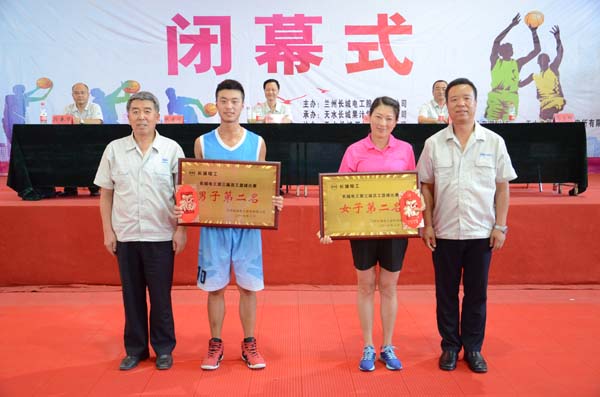 长城电工第三届暨2017年员工篮球比赛活动自7月26日开赛以来,来自长城电工系统的11支男、女代表队经过25场次的激烈角逐,天水长城开关厂有限公司、天水二一三电器有限公司、天水长城果汁集团有限公司男子代表队分获男子第一、二、三名;天水二一三电器有限公司、天水长城开关厂有限公司、天水长城果汁集团有限公司女子代表队分获女子第一、二、三名;天水电气传动研究所有限责任公司、甘肃长城电工电器工程研究院有限公司、天水长城控制电器有限责任公司代表队荣获精神文明奖,天水长城果汁集团有限公司荣获优秀组织奖。