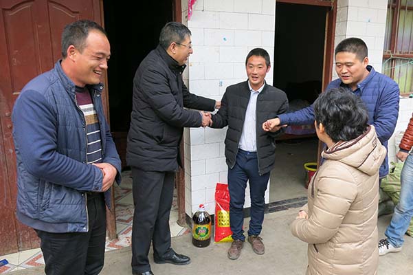 为深入贯彻落实党的十九大精神,认真落实甘肃省脱贫攻坚相关会议精神和省委书记林铎重要讲话精神,按照《长城电工2018年脱贫攻坚实施计划》, 1月25日,甘肃省国有资产投资集团有限公司党委委员、副总经理,长城电工党委书记、董事长杨林;长城电工党委副书记、工会主席郭满元一行冒雪赴陇南市武都区,与武都区领导座谈脱贫攻坚帮扶工作并深入长城电工帮扶的五库乡、月照乡帮扶村看望慰问困难群众。 长城电工职能部门负责人、承担长城电工陇南市武都区脱贫攻坚任务的长开厂公司、二一三公司、天传所公司和长城果汁集团公司党委负责人同行。 在武都区,杨林、郭满元和武都区副区长寇正德、武都区五库乡党委书记张建华就脱贫攻坚工作及年度和后续脱贫攻坚项目推进工作进行了座谈交流。长城电工其他同行人员和驻村帮扶工作队队长一同参加了座谈会。