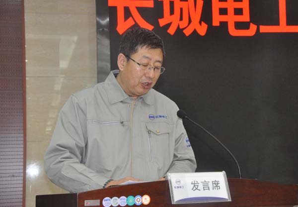(长城电工党委委员、副总经理、董事会秘书白天洪宣读表彰决定)