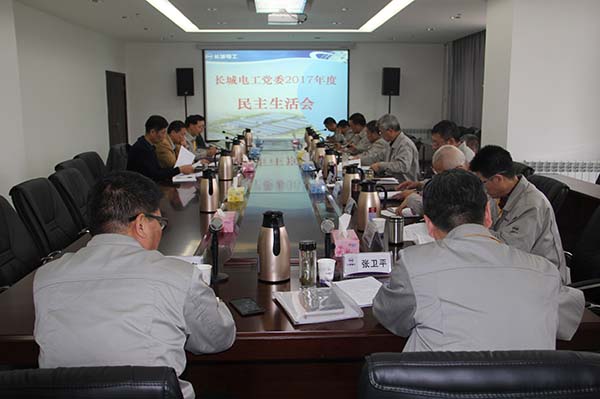 (甘肃省国有资产投资集团有限公司党委委员、副总经理、长城电工党委书记、董事长杨林主持会议) 会议通报了长城电工党委2016年度民主生活会领导班子整改措施落实情况和本次民主生活会征求意见情况。